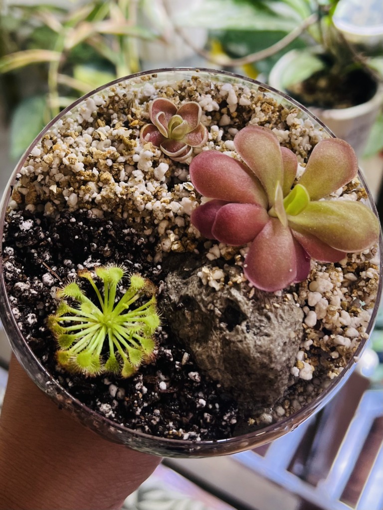 Water: While in its carnivorous phase, provide enough distilled water for the media to remain damp. Reduce watering and allow the media to dry out regularly once the succulent rosette begins to form.