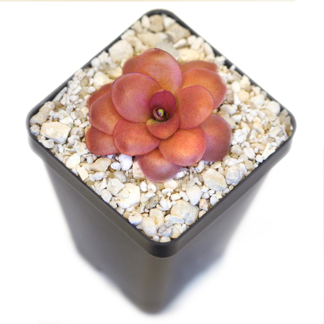 Water: While in its carnivorous phase, provide enough distilled water for the media to remain damp. Reduce watering and allow the media to dry out regularly once the succulent rosette begins to form.