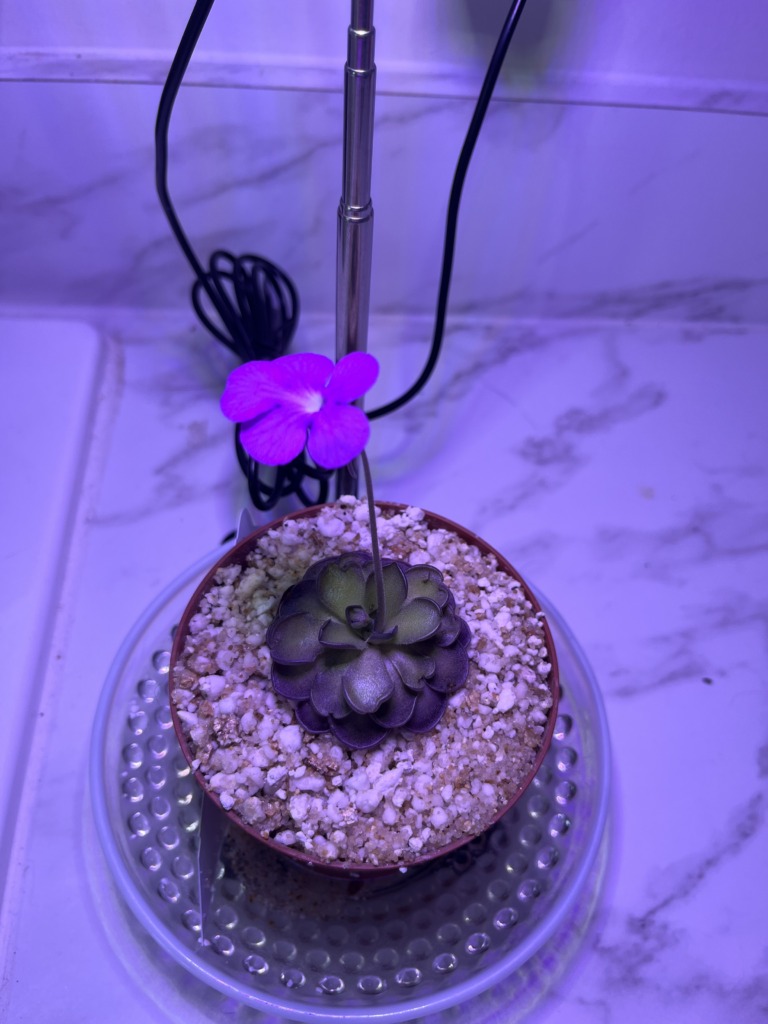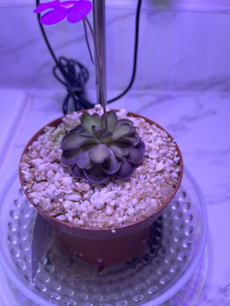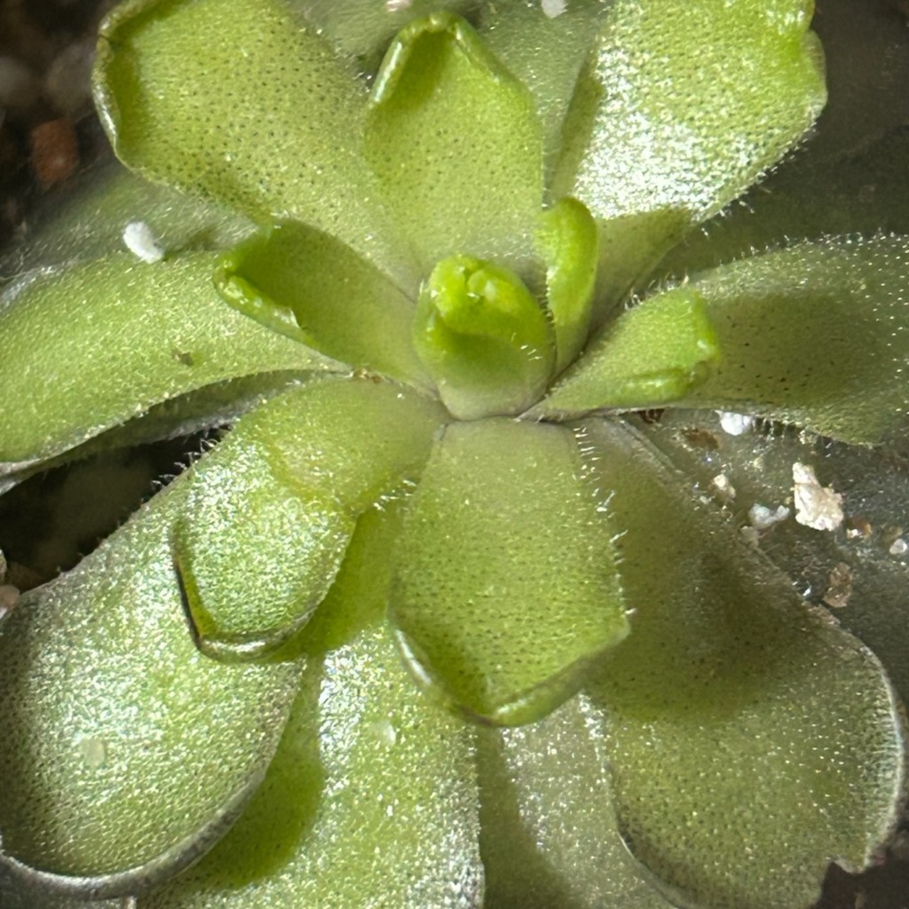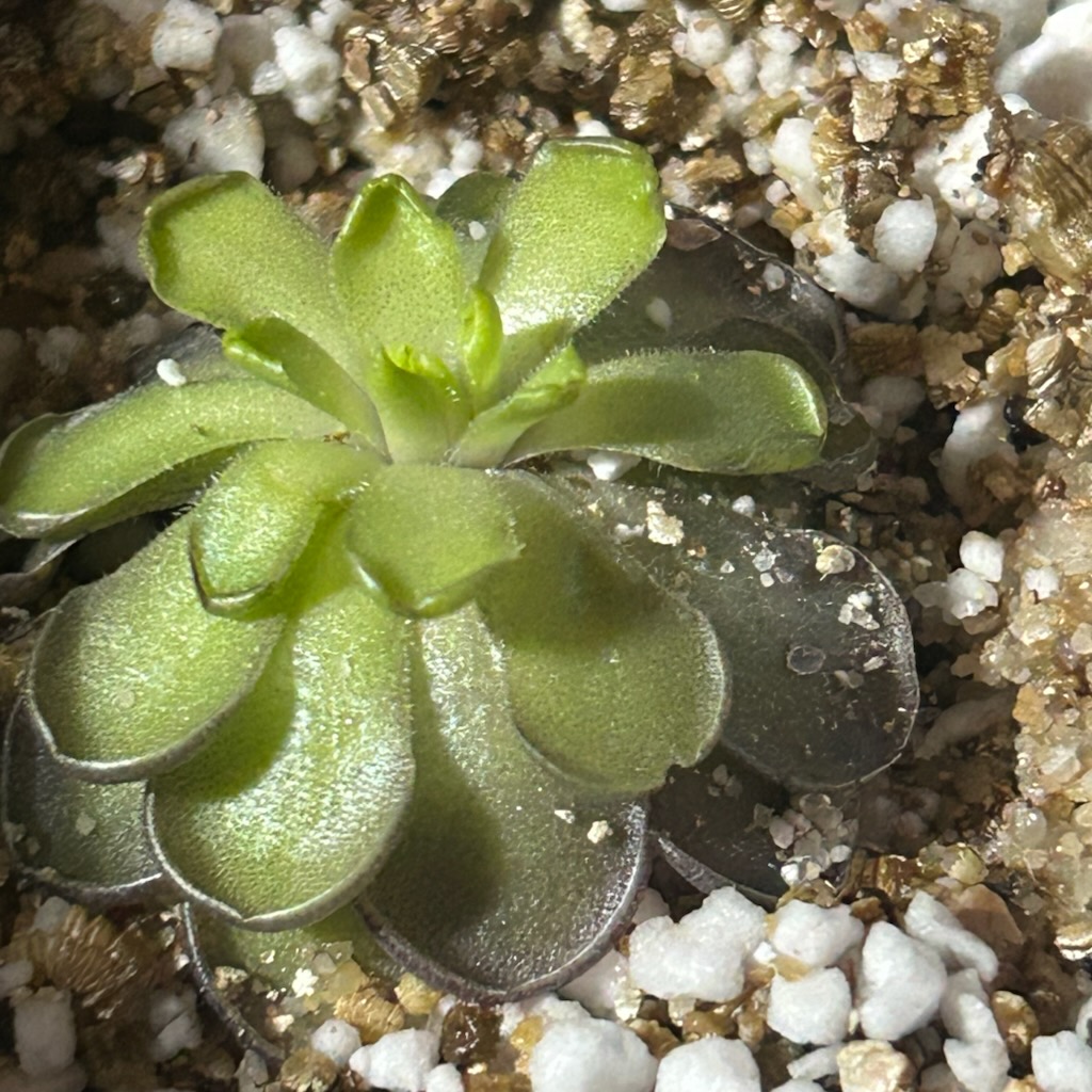 Water: While in its carnivorous phase, provide enough distilled water for the media to remain damp. Reduce watering and allow the media to dry out regularly once the succulent rosette begins to form.
