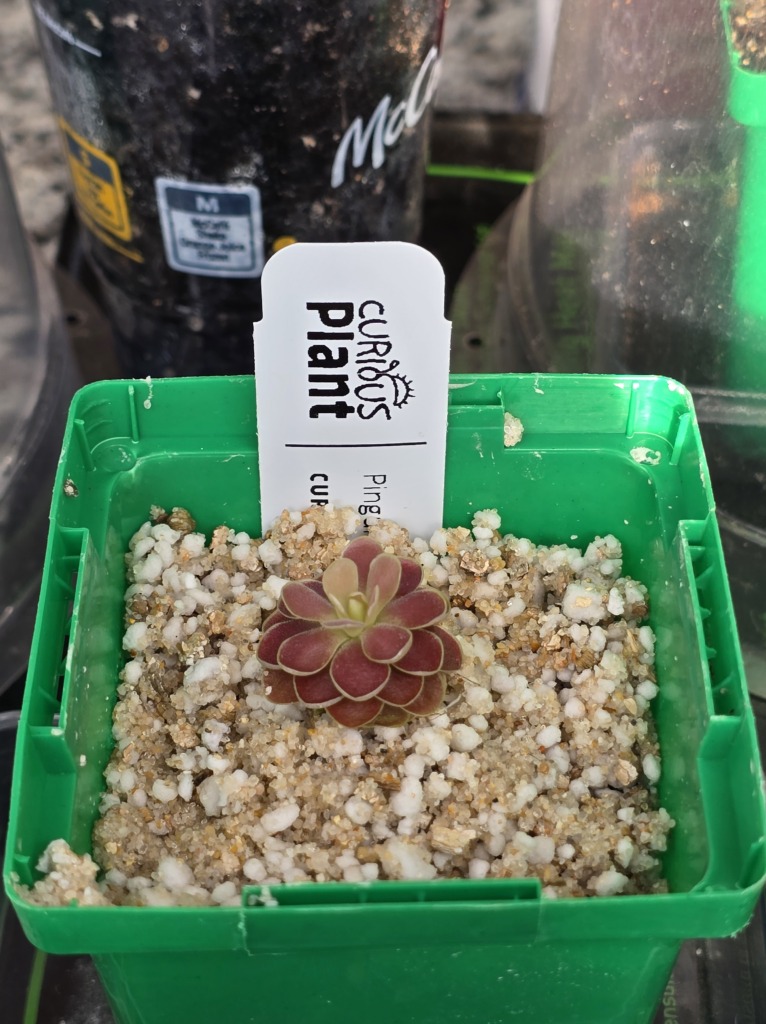 Pinguicula ‘Florian’ is a hybrid between P. debbertiana and P. esseriana. The butterwort was registered as a cultivar in 2004 and is named after the breeder’s oldest son. P. ‘Florian’ produces leaves that become an intense shade of red under strong light. This plant prefers a loose mineral-based substrate that drains easily.